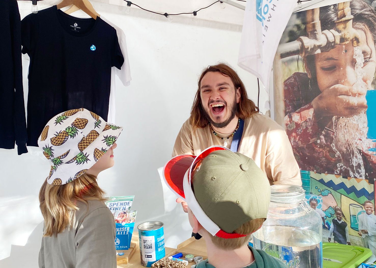An Festivals betreuen wir einen Eventstand, an dem Interaktion mit Spielen, dem Glücksrad, dem Austausch zu unseren Trinkwasserprojekten und mit Kunstaktionen gelebt wird. Zudem sind wir mit bunt bemalten Tonnen und unseren Fahnen in der Crowd unterwegs, feiern die Konzerte und sammeln Depotspenden. Wer leer hat und den Depotbecher (oder das Mehrweggeschirr) für einen guten Zweck loswerden möchte, kann bei uns einwerfen. An bestimmten Events betreuen wir auch Rücknahmestellen, an denen die Besuchenden ihr Depot entweder spenden oder bei uns retournieren können.